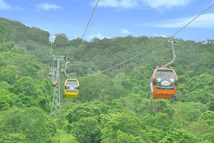 - Cách thứ 2 là đi cáp treo, giúp bạn tiết kiệm thời gian chỉ khoảng 15 phút là tới đỉnh núi. Nếu đi bằng cung đường này bạn còn có thể tận hưởng và chiêm ngưỡng những ngọn cây cổ thụ xanh mướt và những cây hoa dong nở đỏ rực, nghe tiếng chim hót, gió thổi rất trong lành.